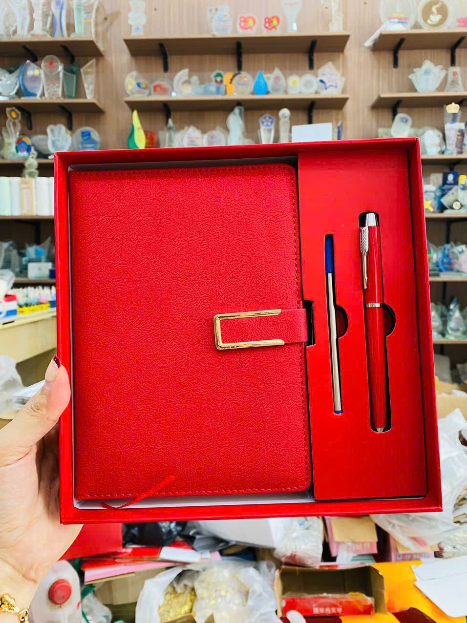 Sổ Da nhiều size, nhiều màu sắc, kèm bút ký in ấn theo combo, hộp định hình có túi đựng.
