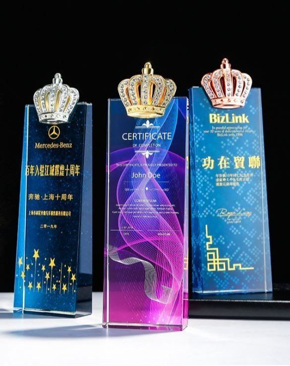 Cúp Pha lê cao cấp, nhiều kích thước, nhiều mẫu, in nội dung theo yêu cầu.