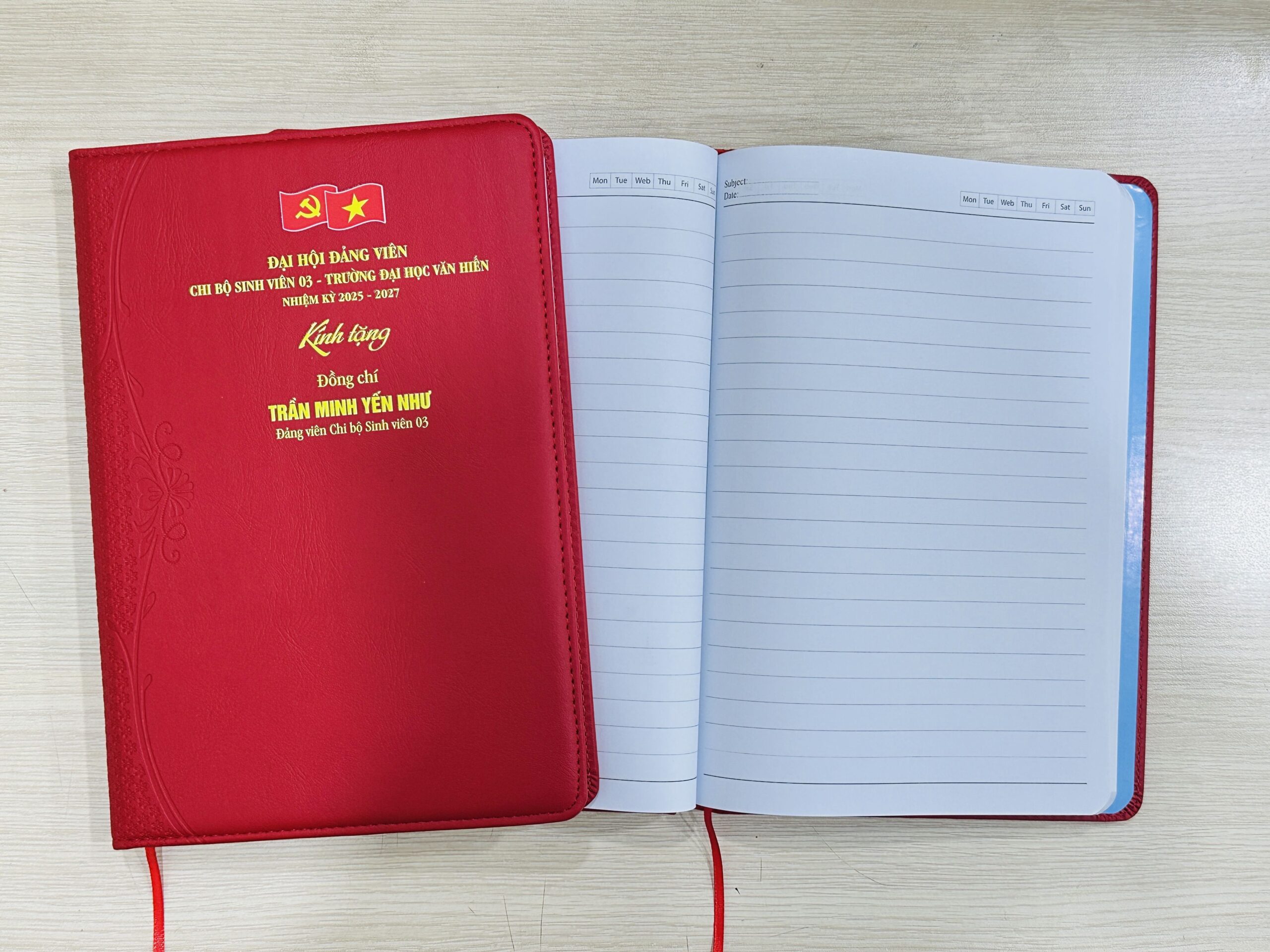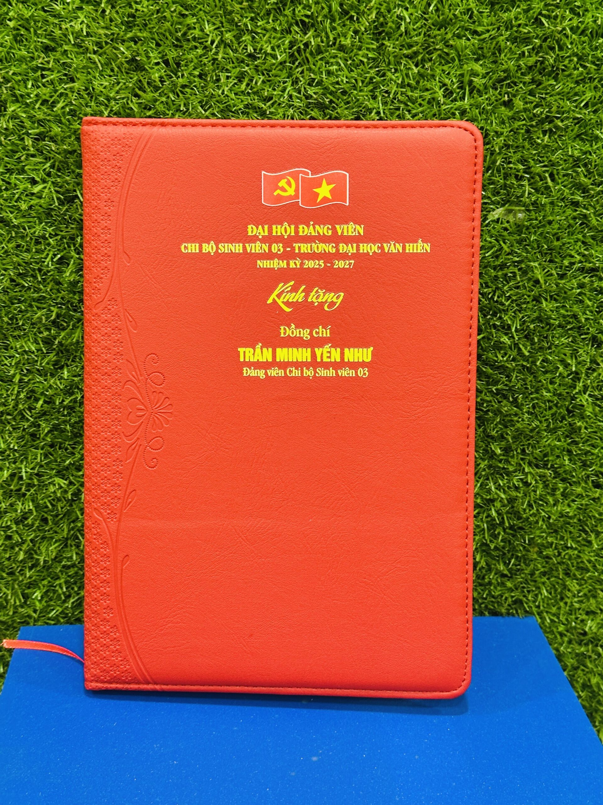 Đa dạng chất liệu, Da, sổ gỗ khắc in ấn logo, nội dung theo yêu cầu.
